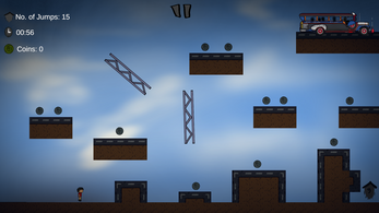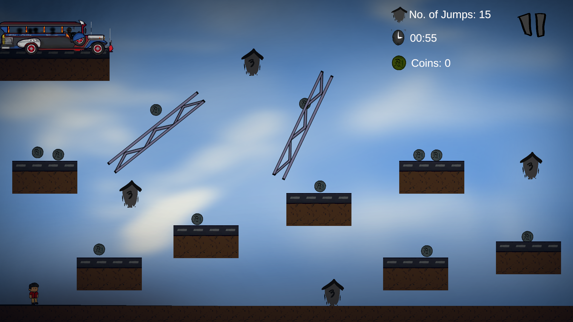 Before you get there, you must collect ₱11 scattered around the level. You also have a limited number of jumps, so you need to move carefully and plan your route.